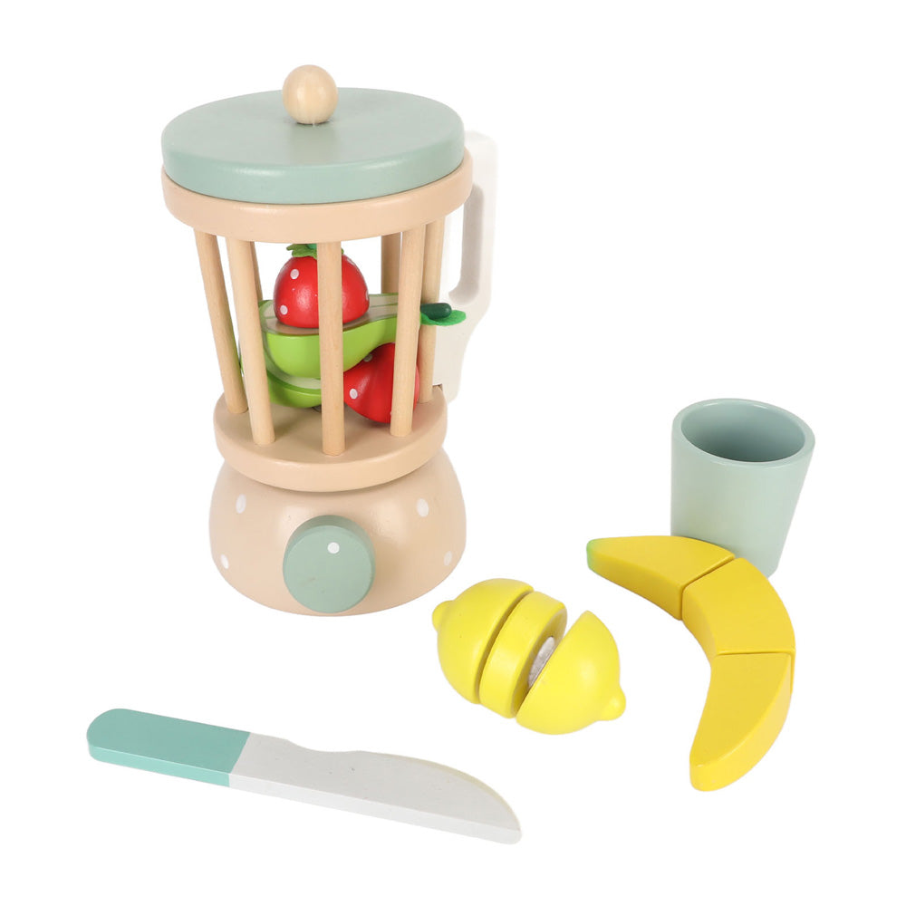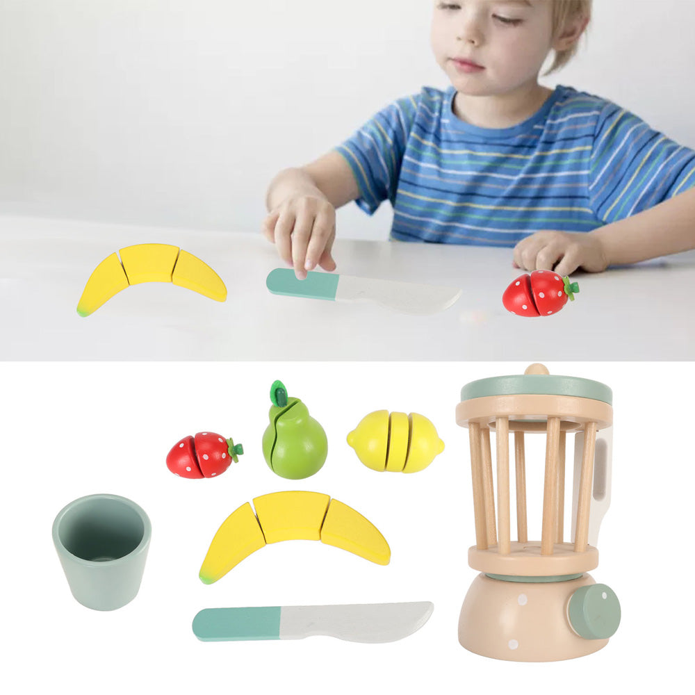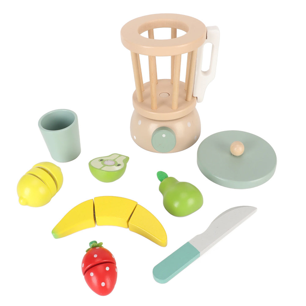 Разпалете интереса на детето си към здравословните храни и осигурете часове на въображаема игра с дървения комплект блендер за плодове KABI. Идеално допълнение към всяка кухня за игра!