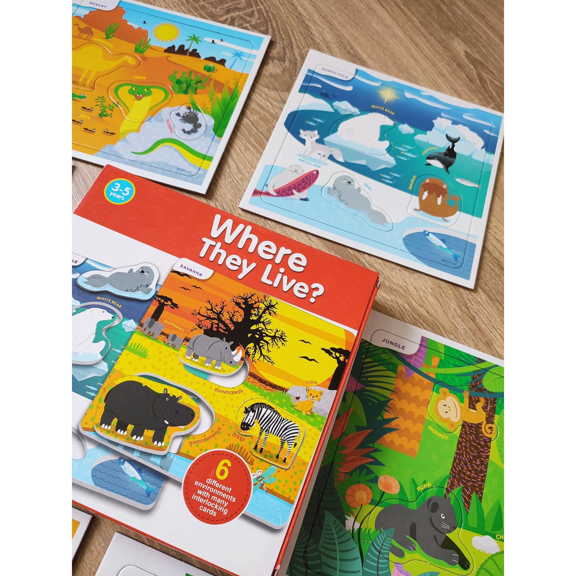 Играта съдържа 6 пъзела с имената на животните и местообитанието, където живеят: