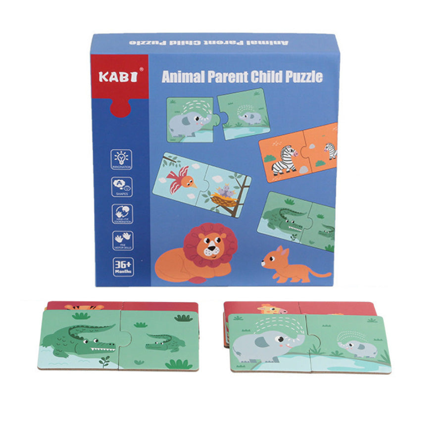 Монтесори пъзелът е изработен от качествен картон с изображения на асоциации на животни, майка и малко.