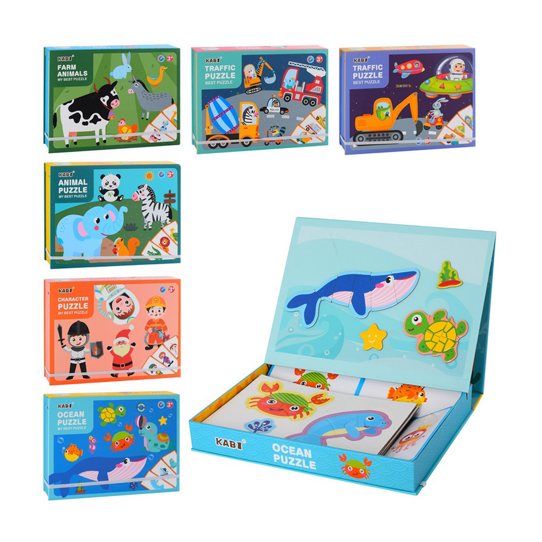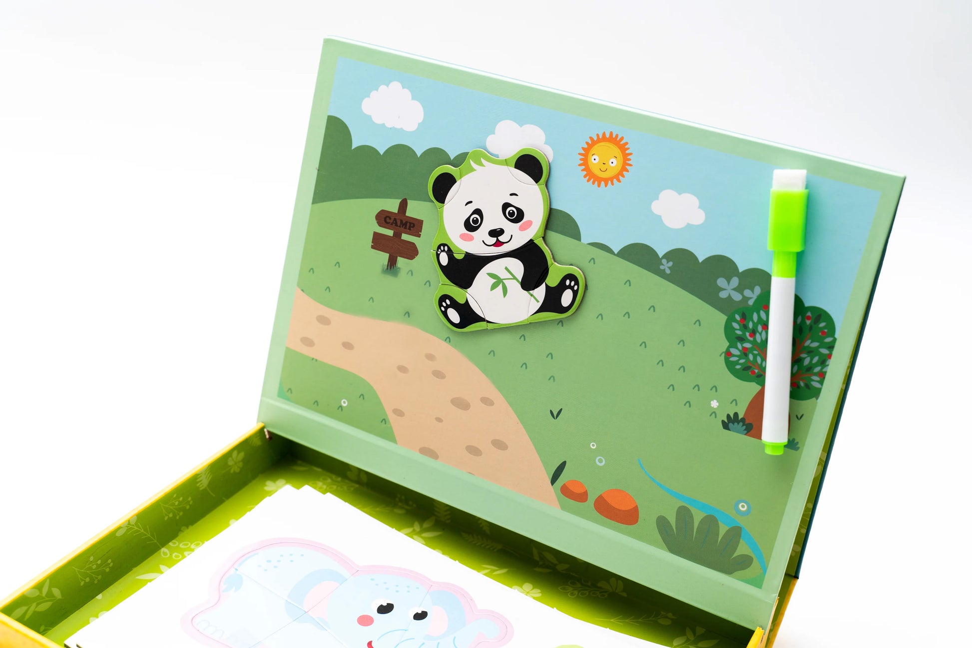 Оформете животните от джунглата от магнитните фигури и имитирайте картите, включени в пакета. Играта може да се използва както у дома, така и в колата и помага на децата да развият въображение, координация и сръчност.