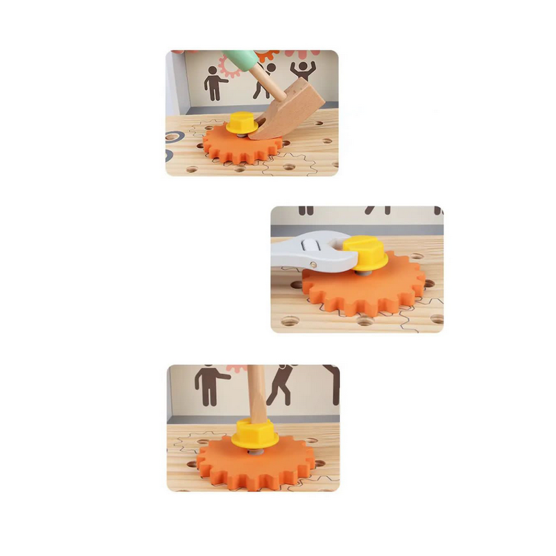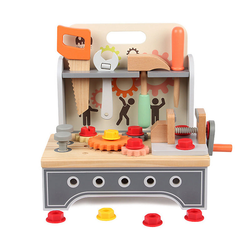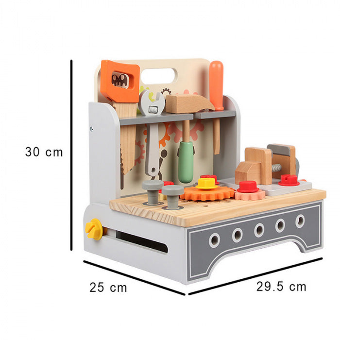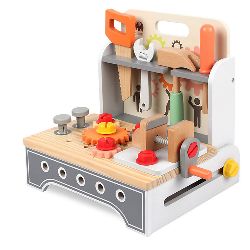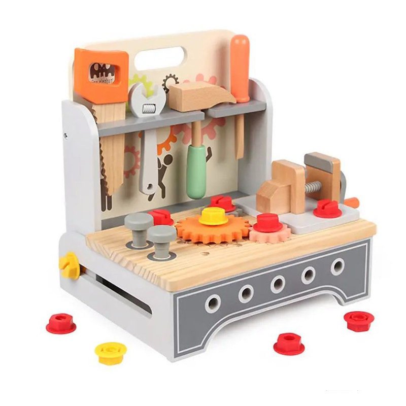 Jucaria in forma de banc de scule este un atelier de lucru complet, utilat cu accesorii care ii vor ajuta pe cei mici sa imite adultii care mesteresc diverse prin casa. Jocul de rol este extrem de important, deoarece cei mici invata prin joaca, imitand ceea ce vad in jurul lor. Un set complex, cu grafica si coloristica vie, cu o multime de obiecte distractive, realizate in intregime din lemn, puternic si rezistent, non toxic.