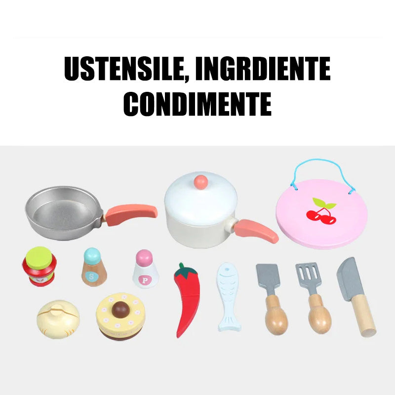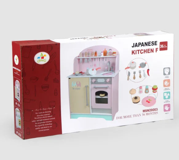 Va prezentam o superba bucatarie in stil japonez din lemn pentru cei mici, dotata complet cu cuptor, plita, chiveta, precum si nenumarate accesorii sa ii insoteasca in jocul de rol.
