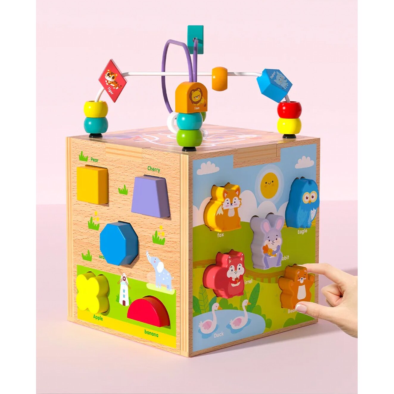 Cub Educativ Din Lemn Centru Activitati Montessori (5-in-1)