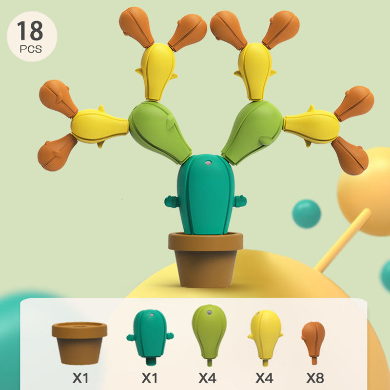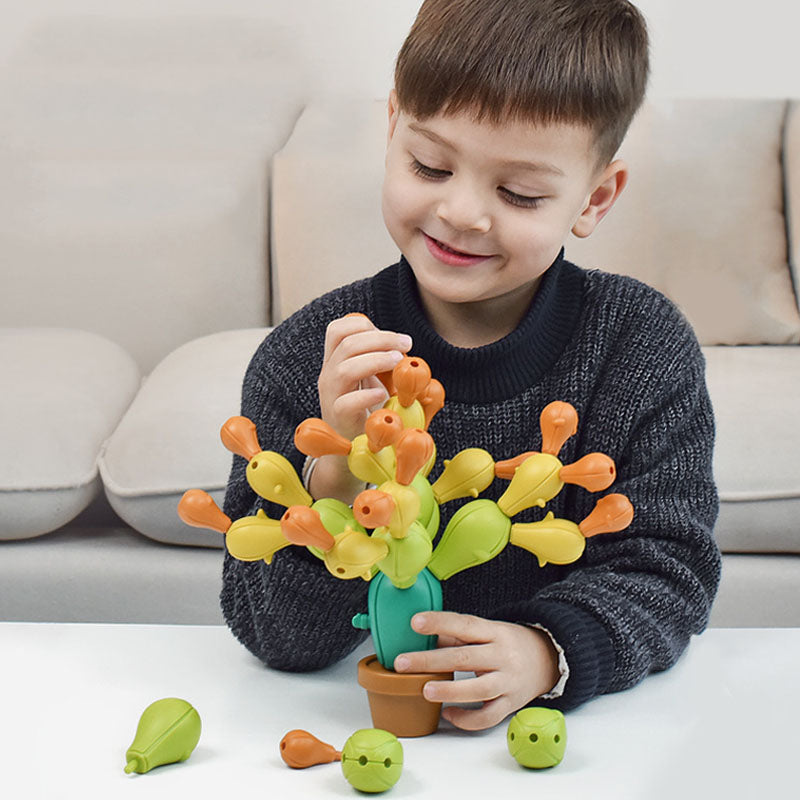 Cu ajutorul acestui joc de constructie si echilibru de tip cactus, copilul isi poate dezvolta abilitatile motorii fine si gandirea logica, strategica deoarece trebuie sa dezvolte diferite strategii pentru a aranja toate piesele in echilibru astfel incat structura jocului sa nu se darame.