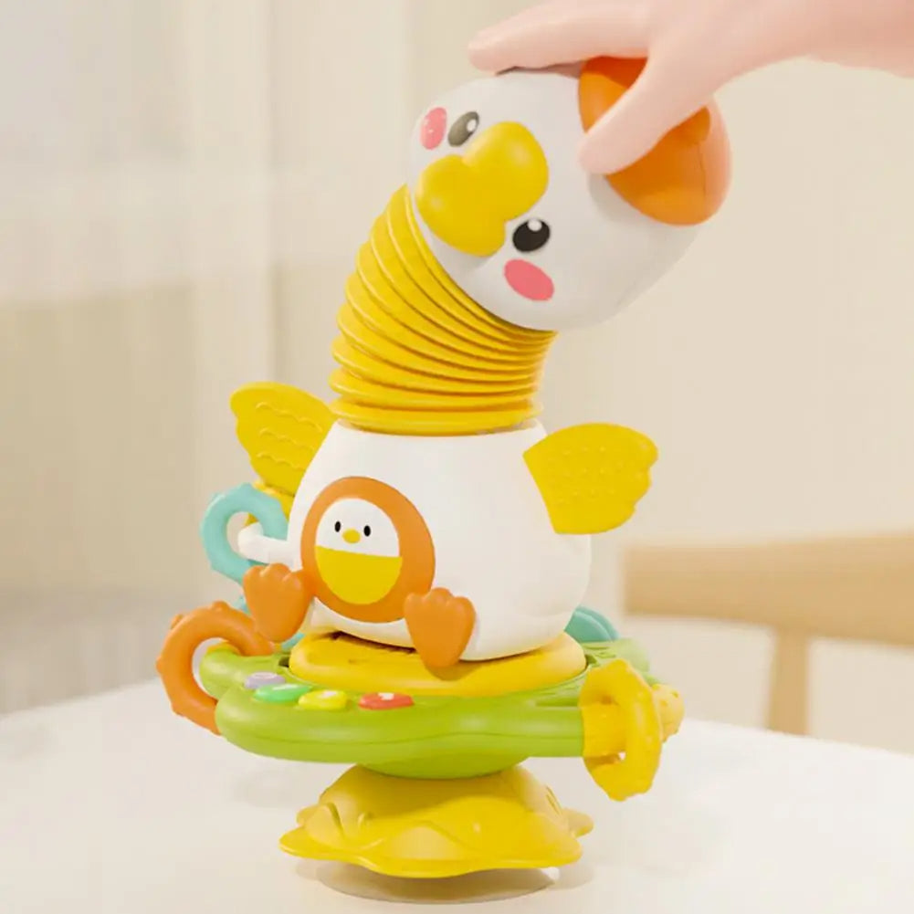 - Jucarie de bebelusi 2-în-1: Cu o formă adorabilă de gâscă, jucăria distractivă cu zornăitoare pentru scaun atrage atenția copiilor. Gâsca poate fi detașată de baza, permițând bebelușilor să se joace separat cu ea. Prin apăsarea butonului de muzică, bebelușii se vor bucura de muzică și sunete, făcândo jucărie muzicală grozavă pentru copiii cu vârsta cuprinsă între 1 și 3 ani.