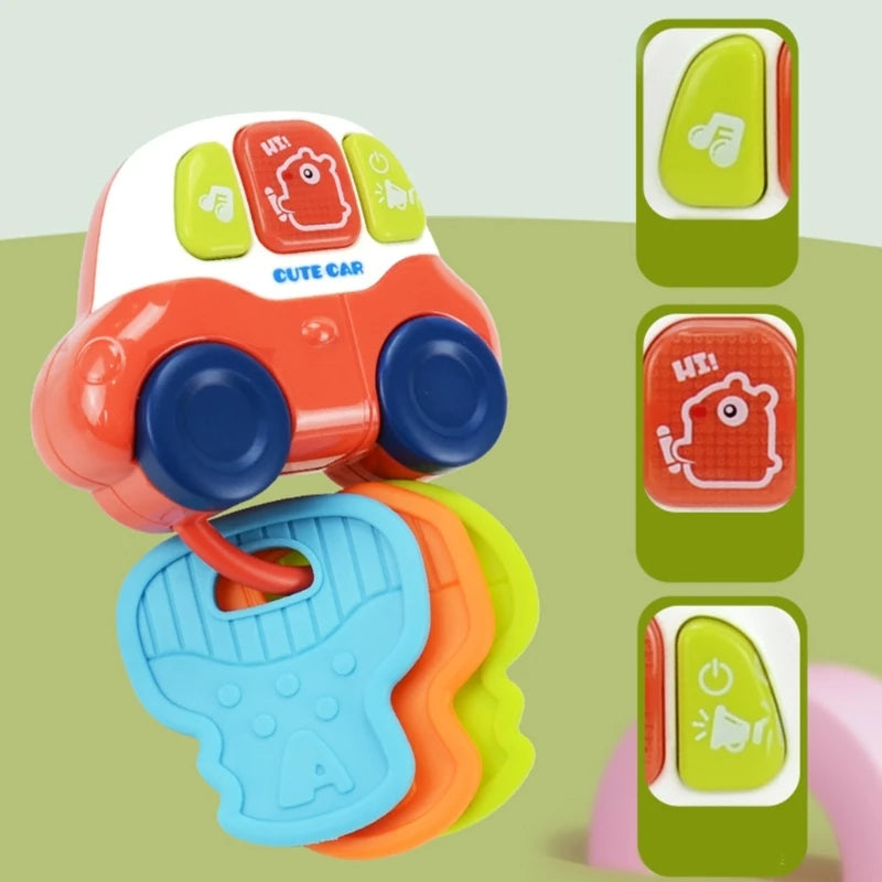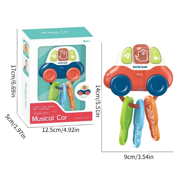 Vă prezentăm o jucărie multifunctională cu muzică, in forma de mașină si chei portabile pentru dentitie, care ajuta la dezvoltarea motricitatii mâinilor și a ochilor, abilități motorii fine, pentru copii cu varsta cuprinsa intre 6 si 18 luni.