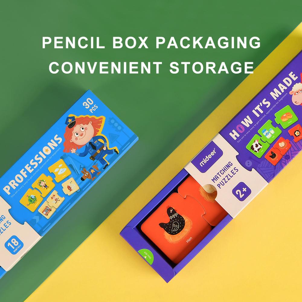 Acest set de puzzle dezvolta motricitatea fina, rabdarea, gandirea logica dar si la invatarea unei limbi straine (limba engleza).