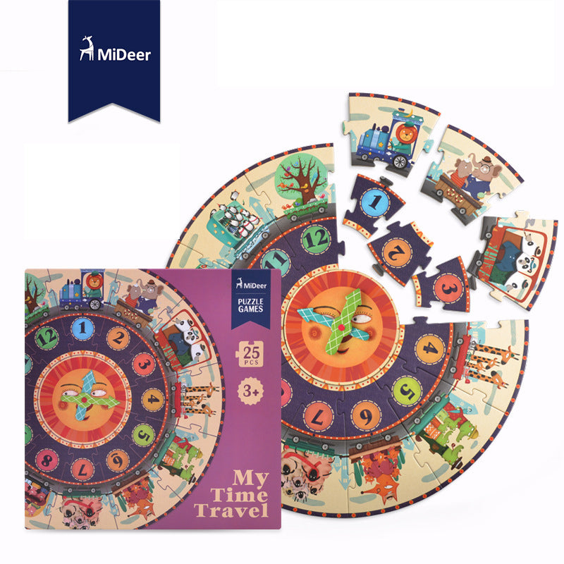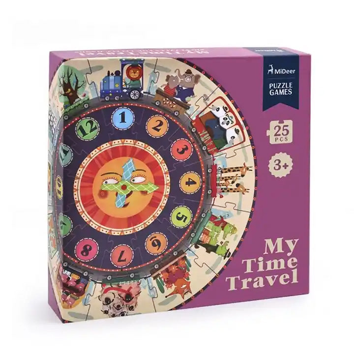 Va prezentam un joc educativ, MY TIME TRAVEL, un puzzle gigant de podea cu 25 de piese reprezentand ceasul, cifre si asocieri de imagini de la MiDeer Toys.