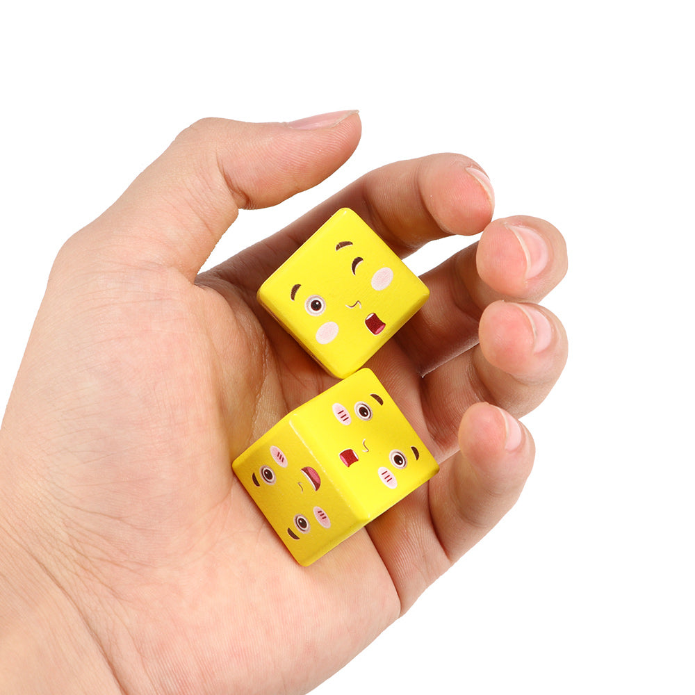 Joc educativ pentru copii cu zaruri. Un copil arunca un zar cu expresii, apoi acesta trebuie sa formeze expresia faciala indicata de zar.