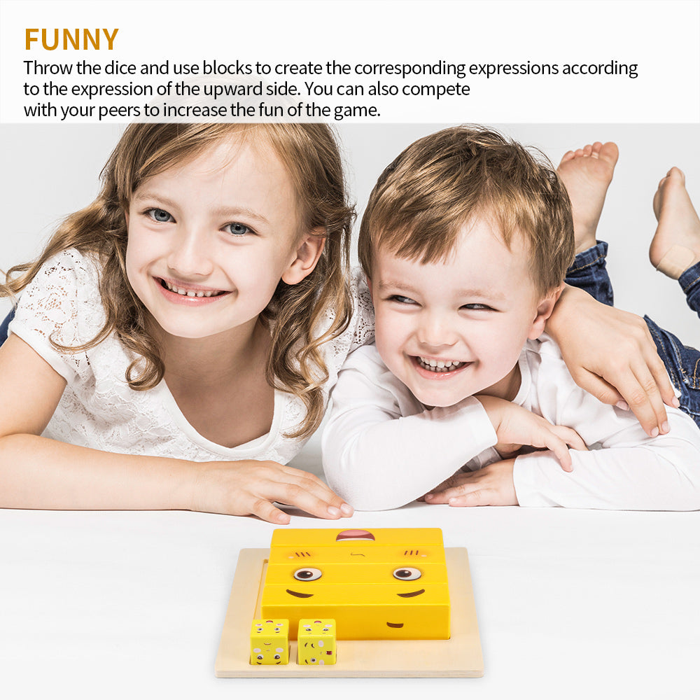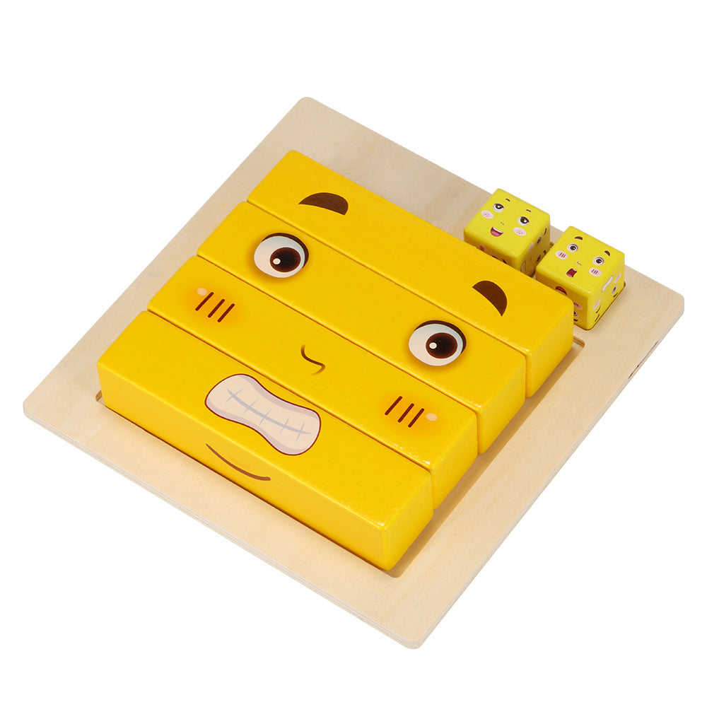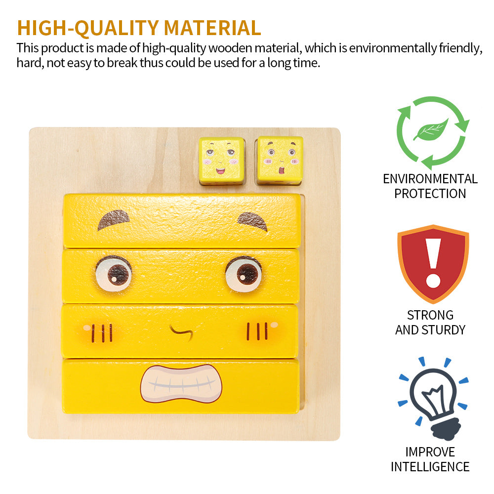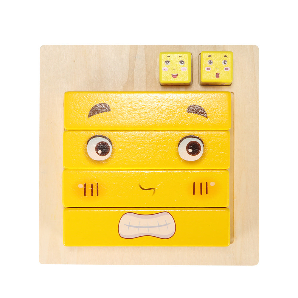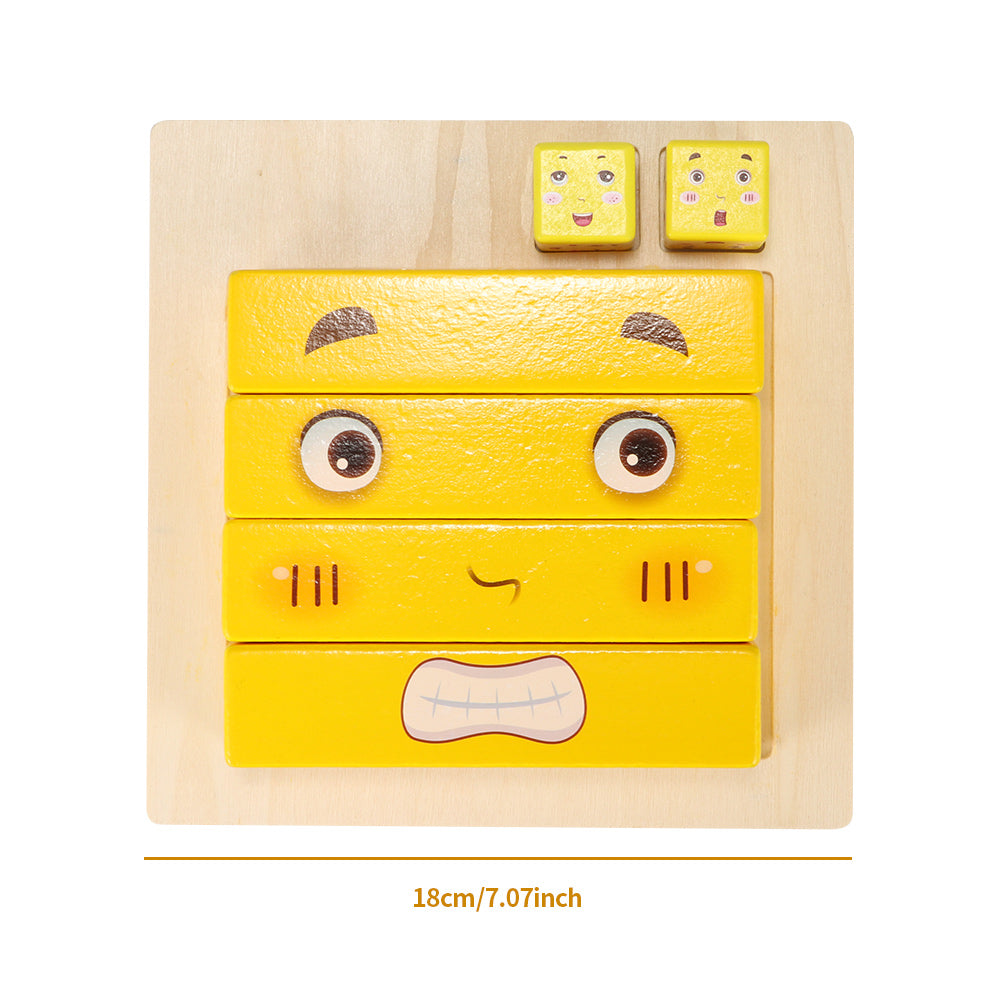 Joc de tip puzzle din lemn: Expresii faciale si exprimarea emotiilor. Joc educativ pentru descoperirea starilor si a emotiilor.