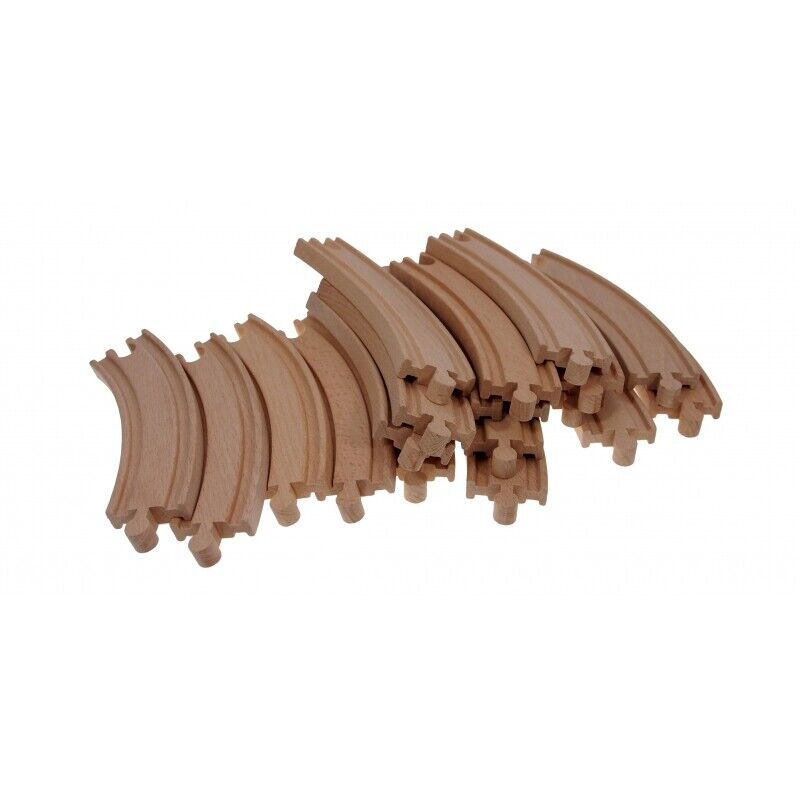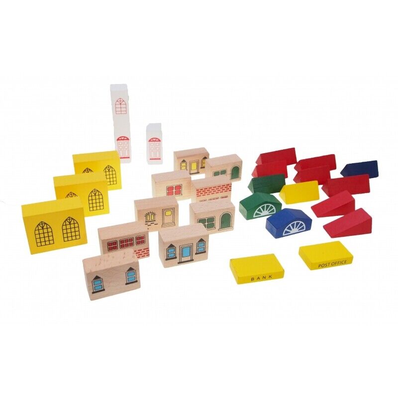 Set-ul contine 100 de piese din lemn, vopsite cu vopsea pe baza de apa si lacuri non-toxice. Acestea sunt compatibile si cu alte sine de la alte brand-uri.