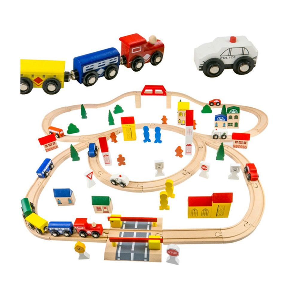 Set Trenulete Montessori Din Lemn (100 piese)